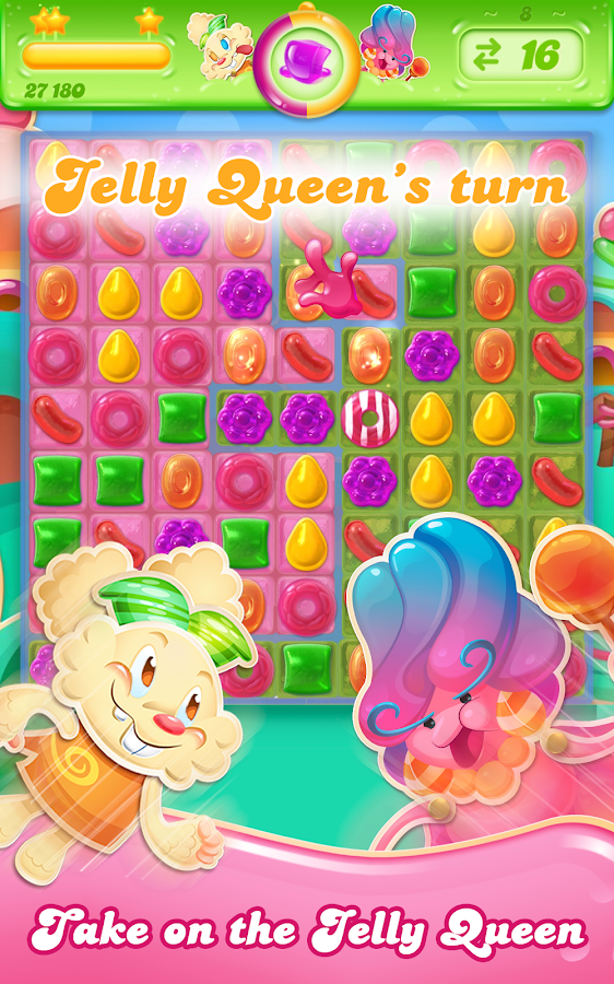 Candy Crush Jelly Saga is an interesting strategy puzzle type game for android device.You have to play against with a new player called Jelly Queen .Who spreads the most jelly by matching candies he or she wins the level.You can also play this game with your friends.And share your score on facebook.